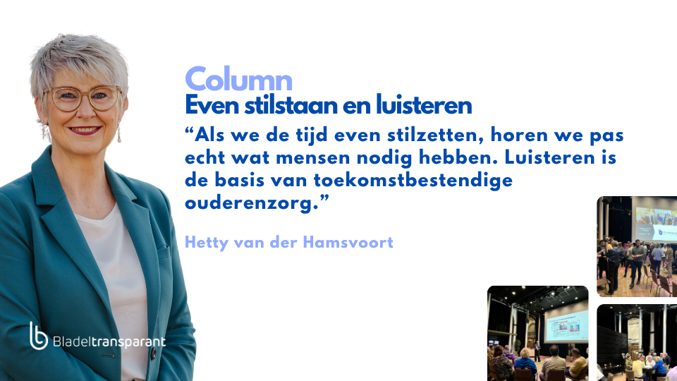 In mijn jeugd keek ik met plezier naar de populaire tv-serie Ti-Ta Tovenaar. De dochter van de hoofdpersoon – een verstrooide tovenaar – klapte in haar handen om de wereld stil te zetten. Hoe mooi zou het zijn als ik nu zelf deze truc in de vingers had. Deze spontane gedachte schoot door mijn hoofd toen ik donderdag aanwezig was bij een avond die in het teken stond van toekomstbestendigheid van de ouderenzorg in de gemeente Bladel. Georganiseerd door Bladel Transparant, die de opgehaalde informatie benut voor toekomstig beleid en het verkiezingsprogramma van 2026.