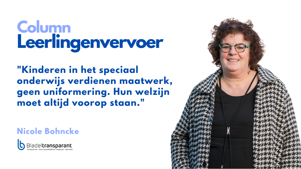 Vier jaar geleden hebben we met de gemeenteraad bij een nieuwe verordening leerlingenvervoer unaniem een amendement aangenomen om kinderen van het speciaal basisonderwijs thuis te laten ophalen in plaats van op een opstapplaats. Dit amendement hadden we opgesteld mede naar aanleiding van reacties van ouders die wij destijds ontvangen hebben op onze oproep om ervaringen te delen. Ook is er toen een motie aangenomen om – voordat er in de toekomst een nieuwe verordening leerlingenvervoer wordt opgesteld – het leerlingenvervoer met een klanttevredenheidsonderzoek te evalueren.