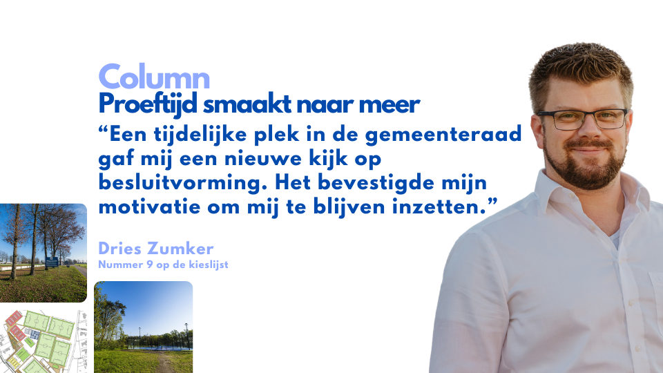 Afgelopen 25 september begon voor mij een korte periode als officieel raadslid. Ter vervanging van Lisa van Hoof, die met welverdiend zwangerschapsverlof was, mocht ik toetreden tot de gemeenteraad. Voor mij voelde dit als een soort proeftijd, een korte periode waarin ik kon ervaren wat het verschil was tussen gemeenteraadslid en commissielid zijn. De eerste raadsvergaderingen waren direct leuk om bij aan te sluiten, waar het in twee avonden in één week ging over de begroting van de komende periode. Een flinke kluif en een stevige zit, maar enorm interessant om te zien wat er aan gaat komen voor de gemeente Bladel. In de weken daarna heb ik nog een aantal vergaderingen en raadsinformatiebijeenkomsten mogen bijwonen, wat allemaal waardevolle ervaring gaat zijn voor de komende raadsperiode.
