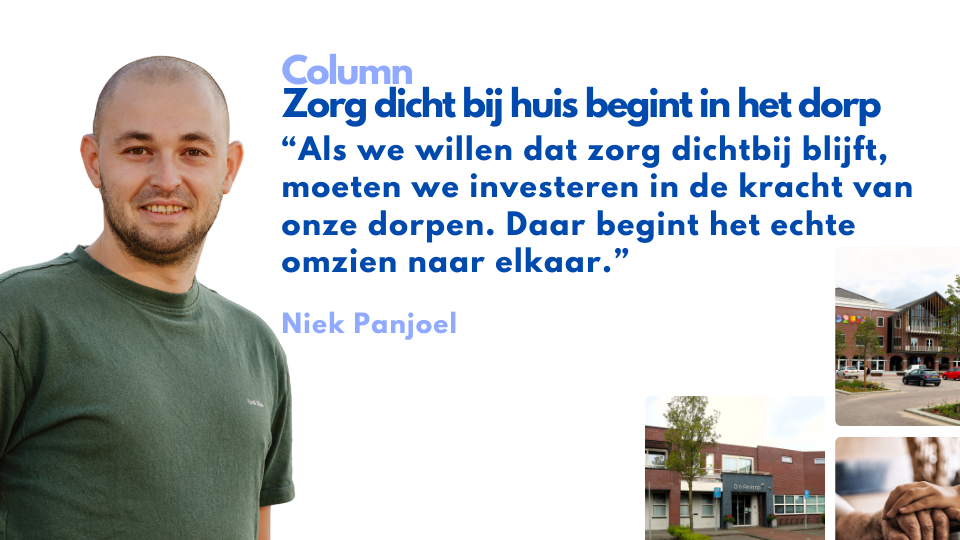 In onze dorpen zorgen we al generaties lang voor elkaar. Een praatje bij de bakker, een helpende hand bij de buren, even meedenken met iemand die het moeilijk heeft. Het lijkt zo vanzelfsprekend. Toch merken we dat die vanzelfsprekendheid onder druk staat. De zorgvraag stijgt, het aantal ouderen groeit en de professionele zorg kan het niet meer alleen aan. Juist daarom is het belangrijker dan ooit om de kracht van onze dorpen te benutten.